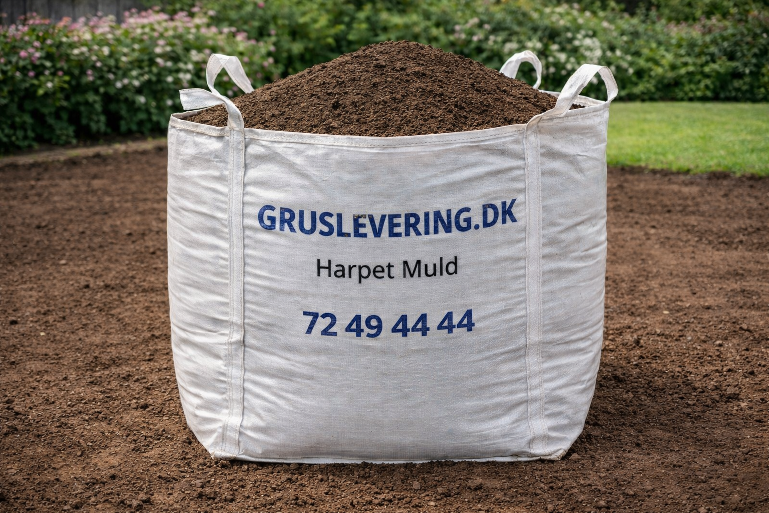 •1 m² græsplæne x 10 cm jord = 0,10 m³ – Det vil sige at 1 bigbag ned feks 1500L harpet muld rækker til 15m2 ved 10cm lag.